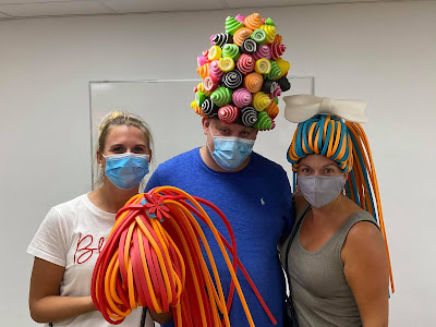 Trouwens, dit was 1 van de 2 avonden waarop men een hoed maakte. Op woensdag (de 3e avond) creëerde men pruiken!